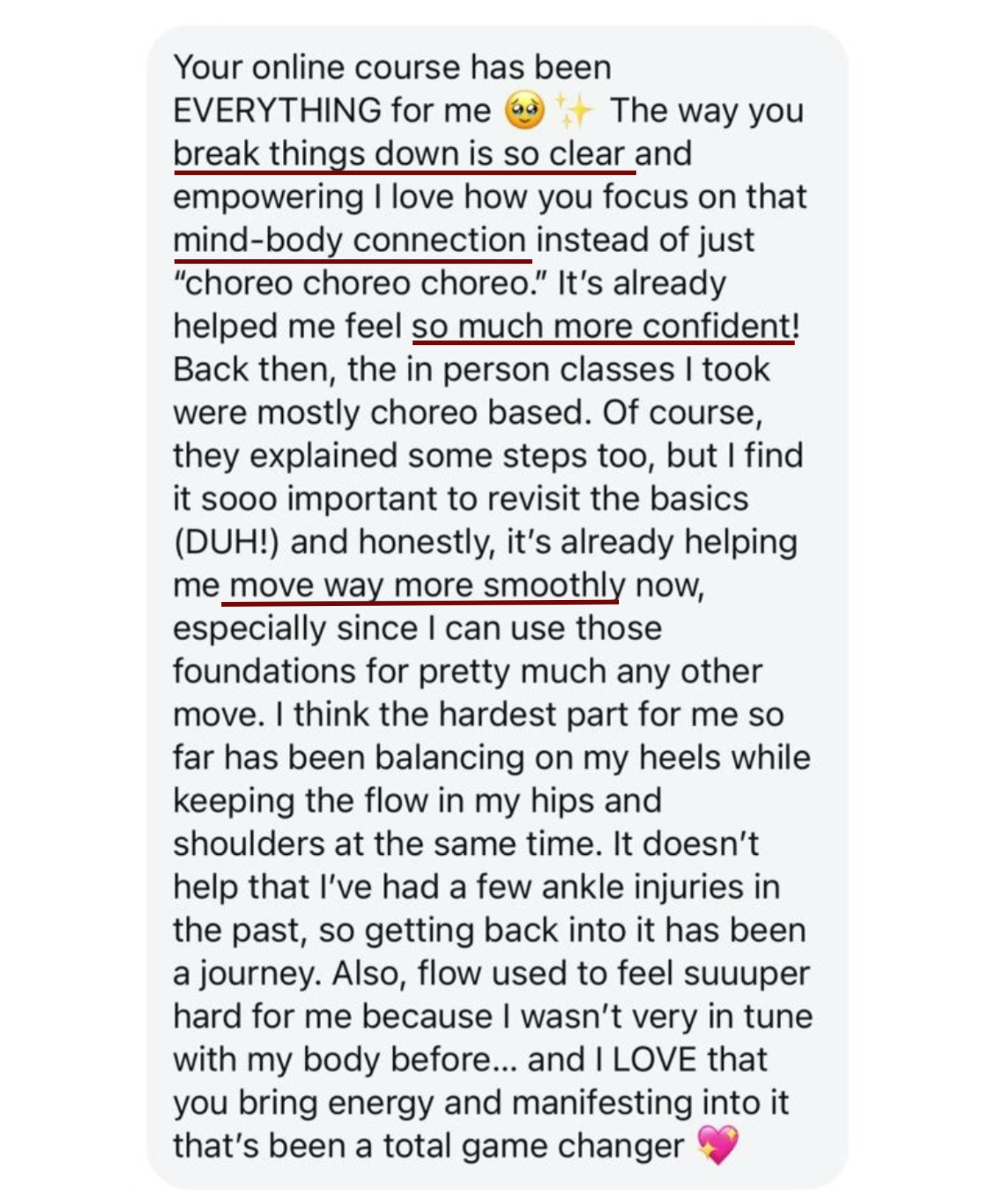 I’ve taken that knowledge and poured it into this course so you don’t just learn to dance in heels, you embody a new way of moving, thinking, and living.